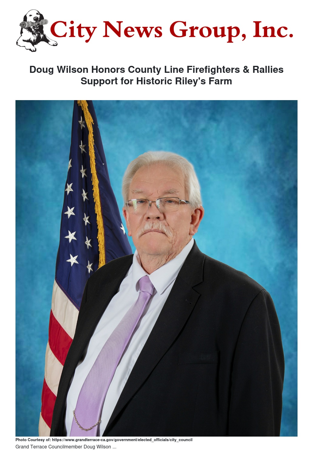 Doug Wilson delivered a heartfelt and spirited speech to the Golden State Republican Women District 7 organization at a celebration aimed at honoring the “County Line Fire” firefighters and rallying support for the historic Riley’s Farm, Wilson used the occasion to reflect on his legacy, his values, and his vision for the future of Grand Terrace. “We are here to save Riley's Farm and honor the ‘County Line Fire’ Firefighters, a terrific group of dedicated individuals,” Wilson said. “It is only right that we recognize the brave men and women who risk their lives for us.”
