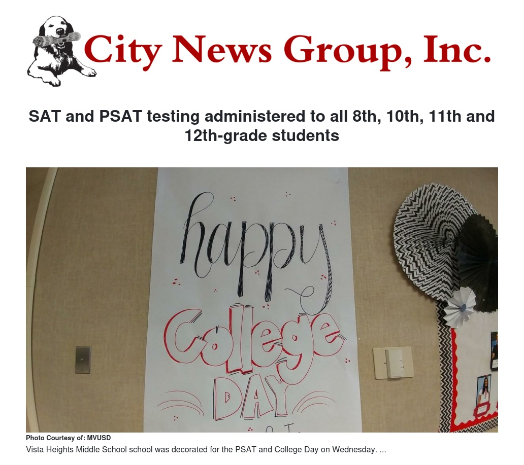 As part of our mission to produce college and career ready graduates, Moreno Valley Unified School District hosted district-wide SAT and PSAT testing on Wednesday. The SAT test was administered to all 2,570 12th grade students at all high schools and the PSAT test was given to 6,337 10th- and 11th-graders in addition to 2,750 8th-graders.