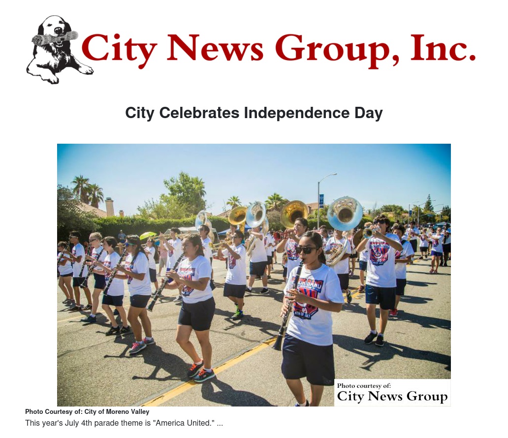 Thanks to the following sponsors for this year's Independence Day celebration: Skechers, Waste Management, KOLA 99.9, Sares-Regis, Amazon, Discount Tire Centers, Sherwin-Williams, Graham Square Wash Bank, Moreno Valley Unified School District, McDonalds, NPG Asphalt, Kenaston Flooring, Riverside University Health System, Your Villa Magazine, Gail Materials, Valley Cities Fence, Access Electric Supply, Miracle Playgrounds, UltraServ, RHA Landscape Architects, West Coast Arborists, Utility Refrigerator, Ewing Irrigation, Hangar 24, Altura Credit Union, Food 4 Less, Moss Bros and Starbucks.
