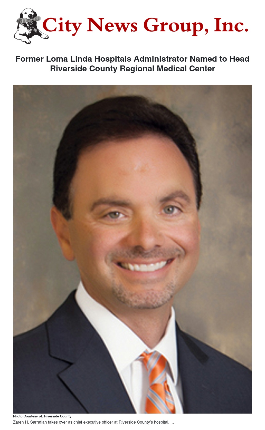 County Executive Office Jay Orr said Sarrafian not only will help take the next steps toward financial stability, he will work to improve health care in the community and expand a network of care anchored by RCRMC. The network includes university programs that educate medical students locally, private and public partnerships in the Inland Empire, and programs that will enable residents to receive specialty care in the region rather than going to Los Angeles or Orange counties.