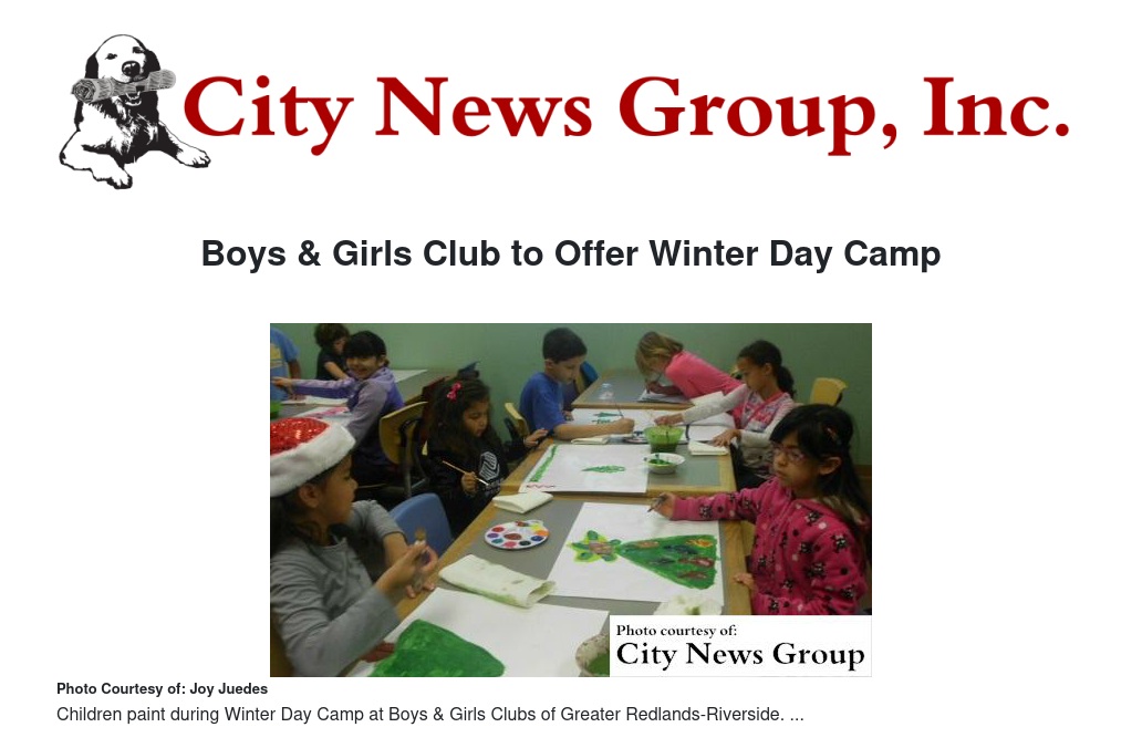 REDLANDS>> Boys & Girls Clubs of Greater Redlands-Riverside is offering three weeks of day camp over winter break in December and January.