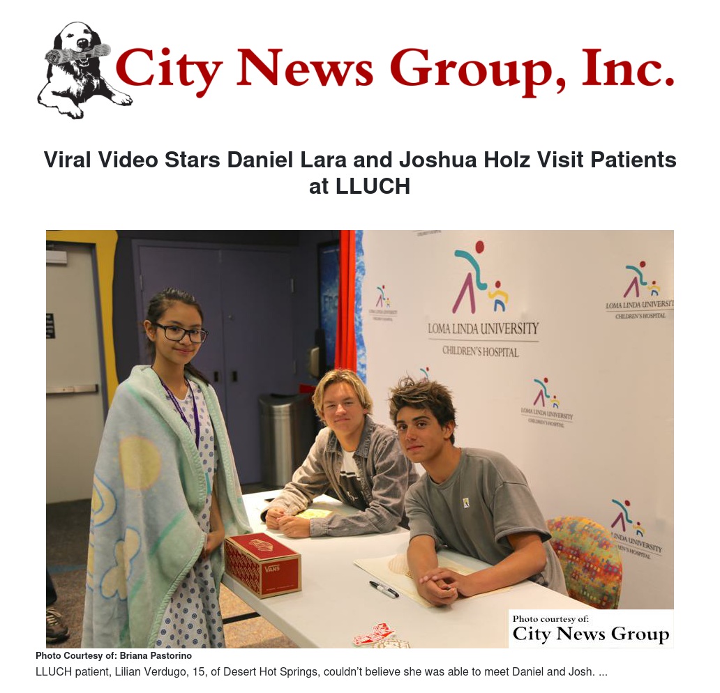 Viral Video Stars Daniel Lara and Joshua Holz Visit Patients at LLUCH