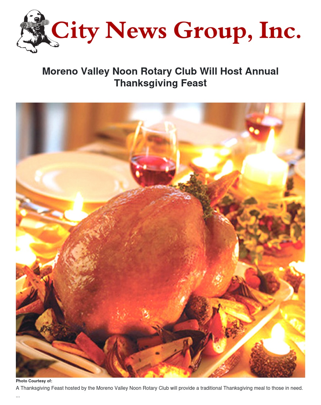 Moreno Valley Noon Rotary Club Will Host Annual Thanksgiving Feast