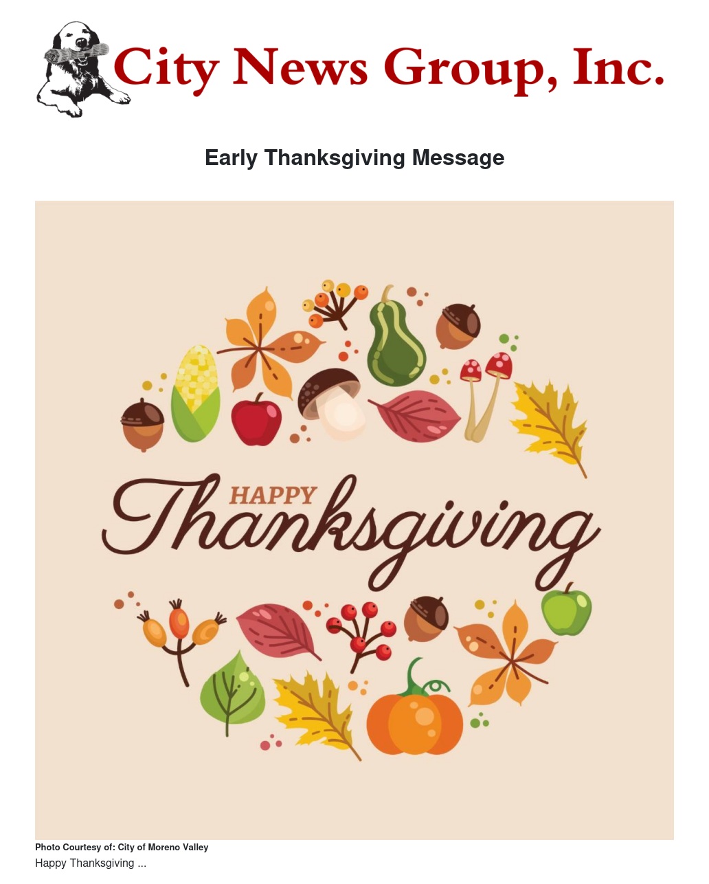 Este Día de Acción de Gracias, una vez más recuerdo lo afortunados que somos de llamar hogar a Moreno Valley. Estas festividades nos dan la oportunidad de reflexionar y reconocer todo lo bueno que nos rodea, especialmente la increíble comunidad que hemos construido juntos.