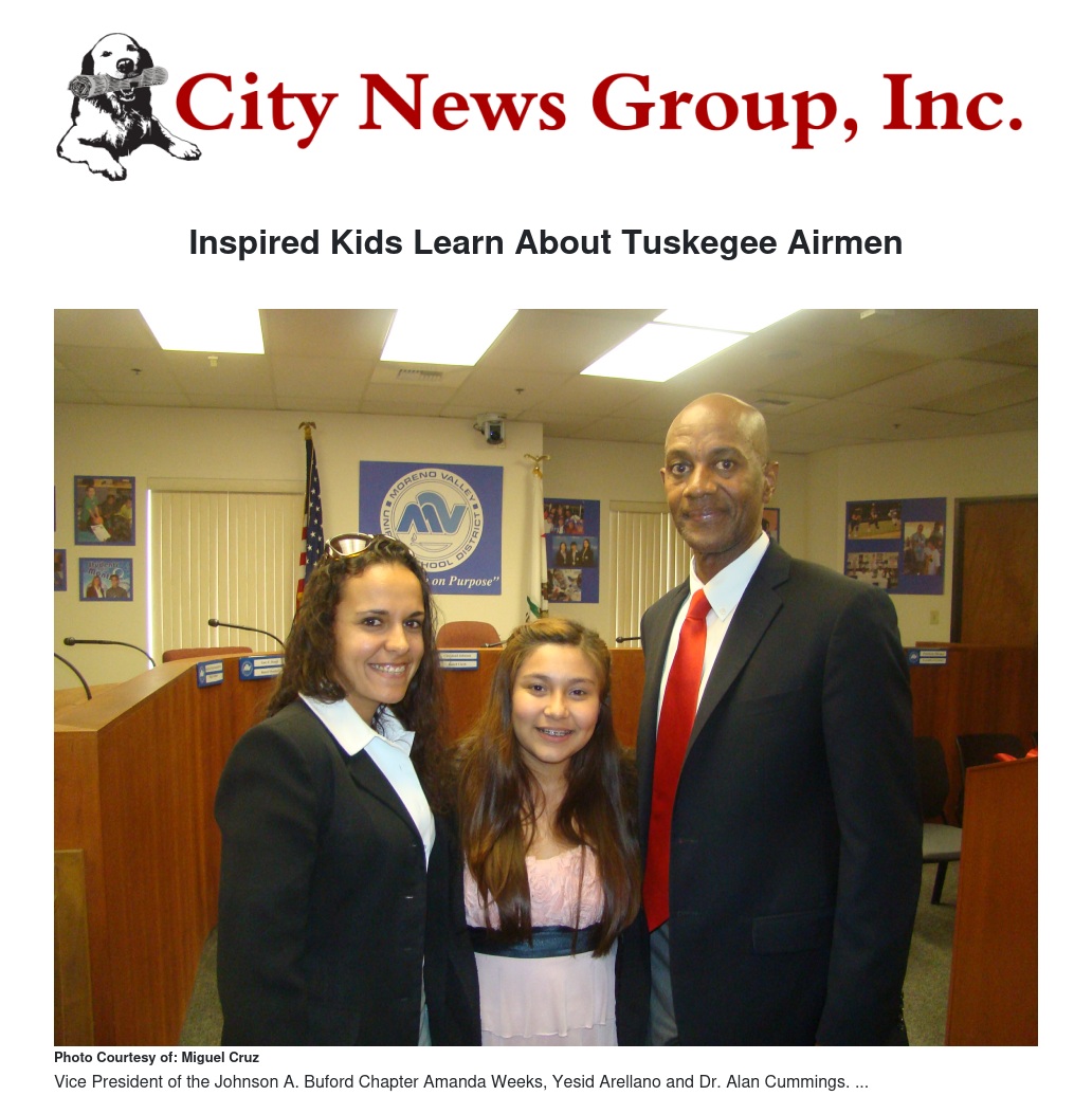 President of the Buford A. Johnson Chapter of Tuskegee Airmen Inc. Buford A. Johnson Chapter, Dr. Alan E. Cummings, along with the organization's Vice President, Amanda Weeks, past president Robert L. Porter and Public Affairs officer Joseph A. Olano were present at the event to speak, and to answer any questions about the Airmen that the children and public had. The Buford A. Johnson Chapter recently worked with the MVUSD to fly 10 kids from the district in an airplane for their first time, for free.