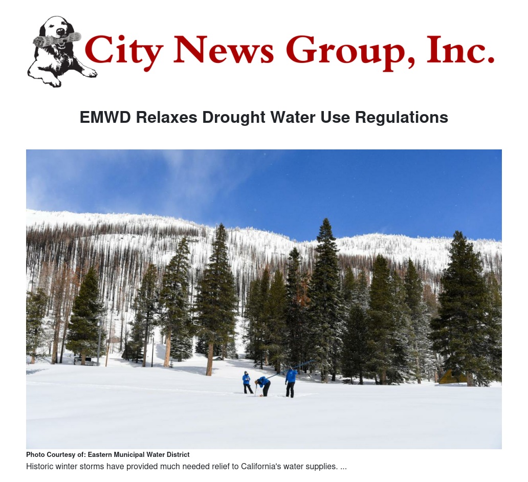 EMWD Relaxes Drought Water Use Regulations by Alex Turner - City News Group, Inc.