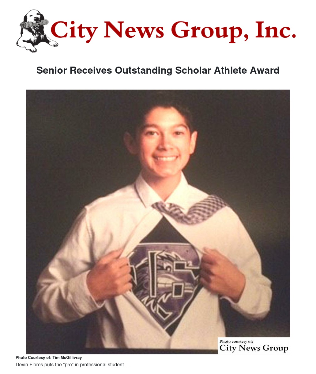 Devin was also a member of the basketball team, where he has received numerous awards, such as Highest Basketball GPA and Coaches Award. He also volunteers, giving back to his community in his free time.