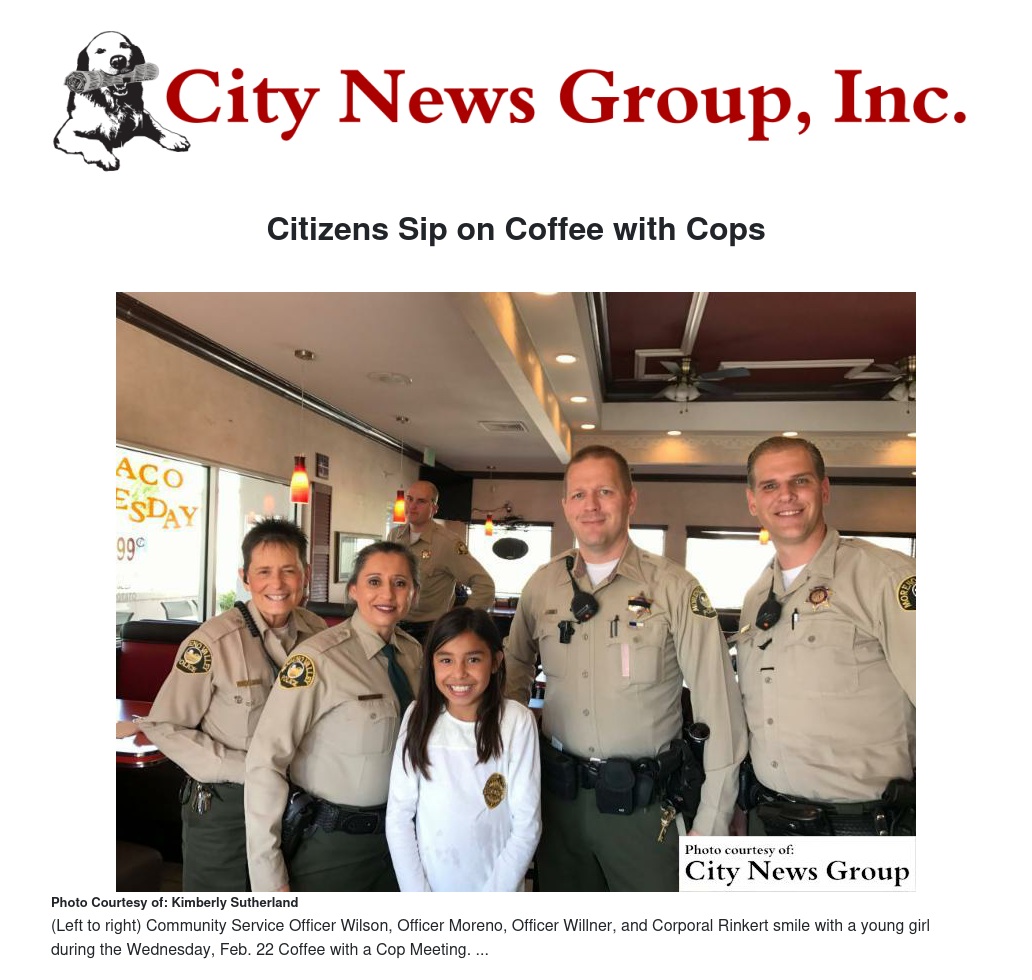 Coffee with a Cop provides an opportunity for community members to ask questions and learn more about the department’s work in Moreno Valley neighborhoods, and the recent meeting was a success, according to a news release from the City of Moreno Valley.