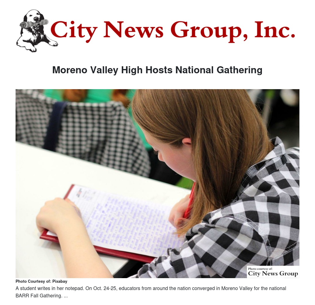 MORENO VALLEY>> On Oct. 24-25, educators from around the nation converged in Moreno Valley for the national BARR Fall Gathering.
