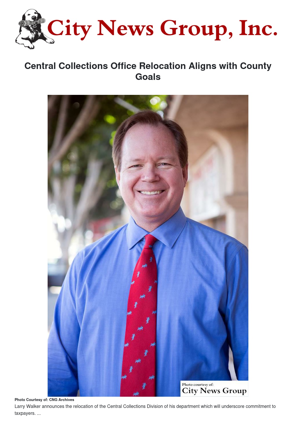 San Bernardino County Auditor-Controller, Treasurer, and Tax Collector Larry Walker announces that as of Nov. 2, the Central Collections Division of his department will be moving their office to a new location at 268 West Hospitality Lane, second floor, just under four miles away from their current location. The office’s main public phone, 909-387-8303, will remain the same.