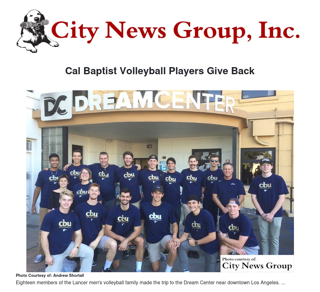 Eighteen members of the Lancer men's volleyball family made the trip to the Dream Center near downtown Los Angeles to volunteer with the organization that "finds and fills the needs of more than 80,000 individuals and families each month," according to its website. It allowed first-year head Coach Derek Schmitt to set the tone for the year.