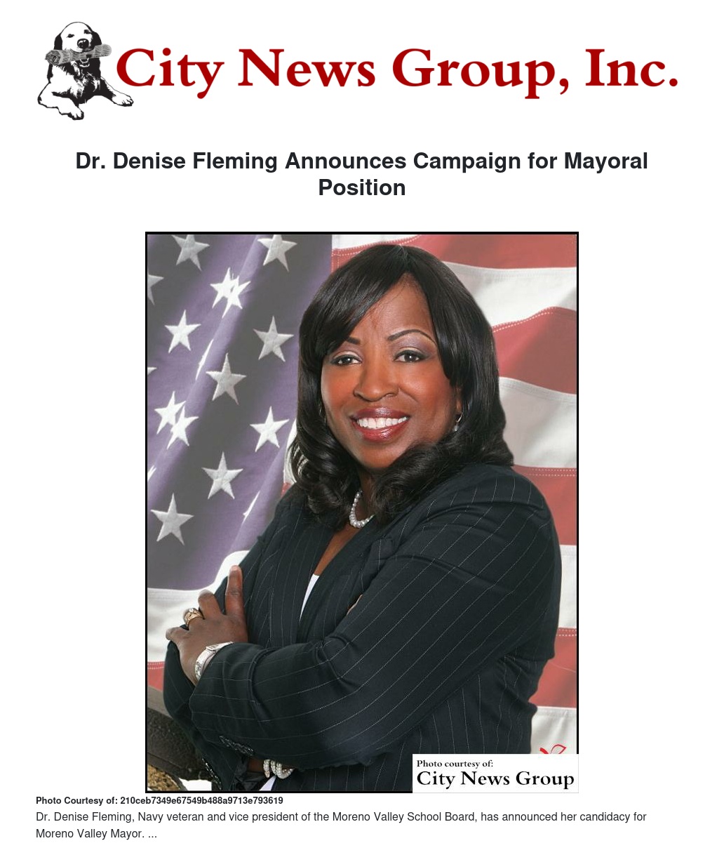 Dr. Denise Fleming Announces Campaign for Mayoral Position