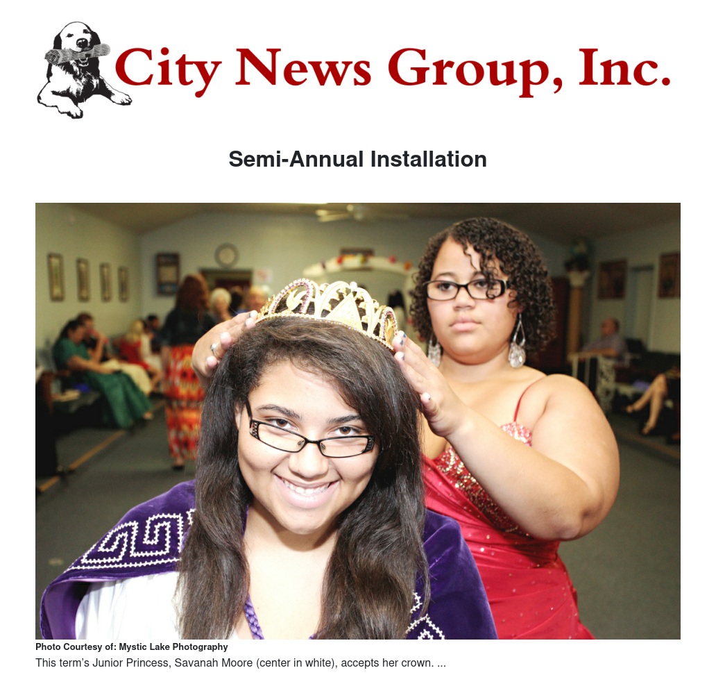 The installation ceremonies happen twice a year, shared Stauber, once in June and again in December. The current six-month term will be presided over by Savanah Moore, junior princess, and her corps of officers: Desiree Dernoncourt, Lucia Estrella, Lerenia Galba-Bright, Tabitha Lett, Arianne Moore and Korie Prefontaine.
