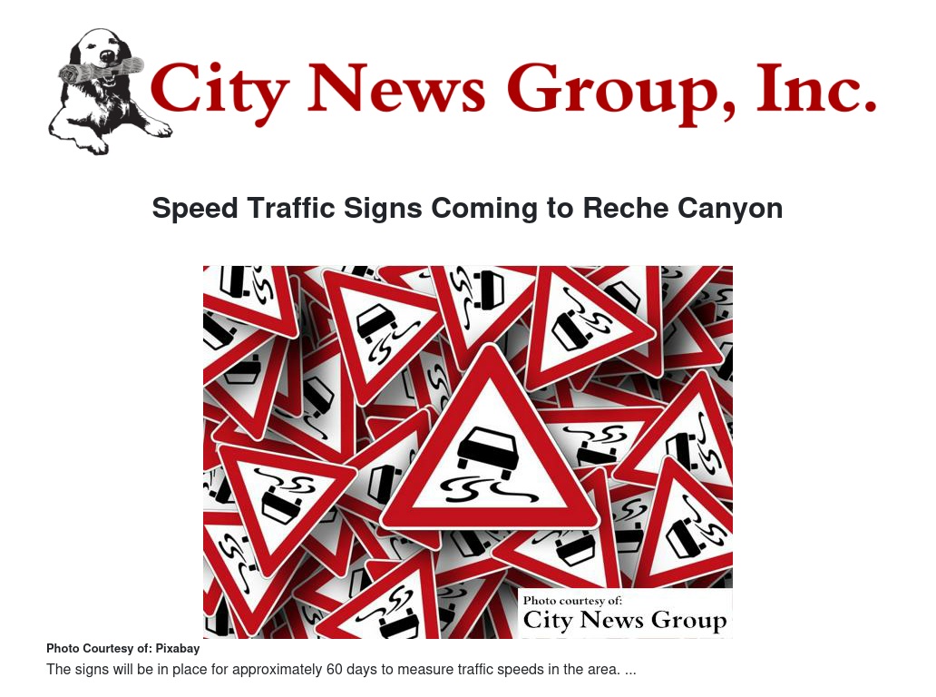 Speed Traffic Signs Coming to Reche Canyon