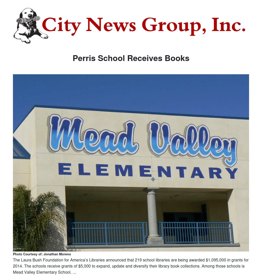 The Laura Bush Foundation for America’s Libraries announced that 219 school libraries are being awarded $1,095,000 in grants for 2014. The schools receive grants of $5,000 to expand, update and diversify their library book collections.