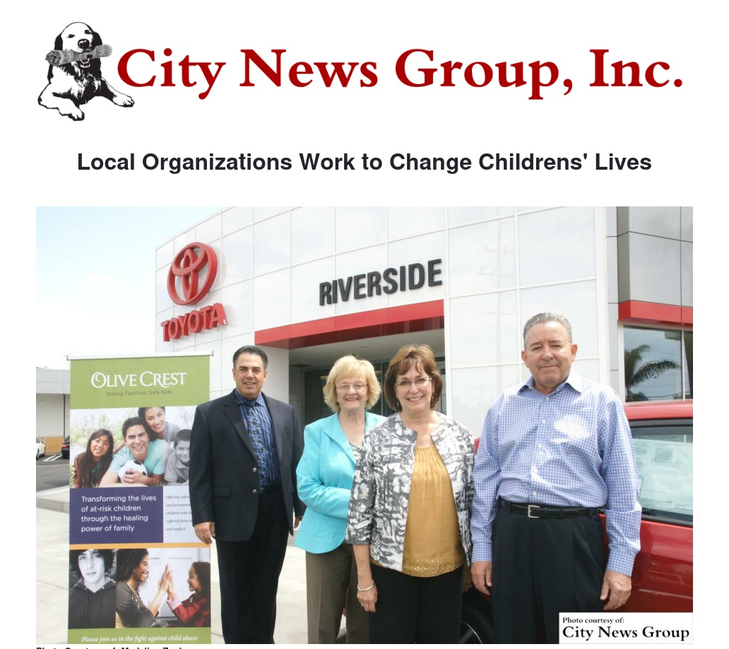 An example of this business support is Olive Crest’s 24-year relationship with Tom Winterling and Toyota of Riverside employees, who have always been there for Olive Crest in the Riverside/Inland Empire area. Because of Winterling, his entire team at Toyota of Riverside and their customers, Olive Crest has been the recipient of well over $500,000 in support of its special events, programs and services.