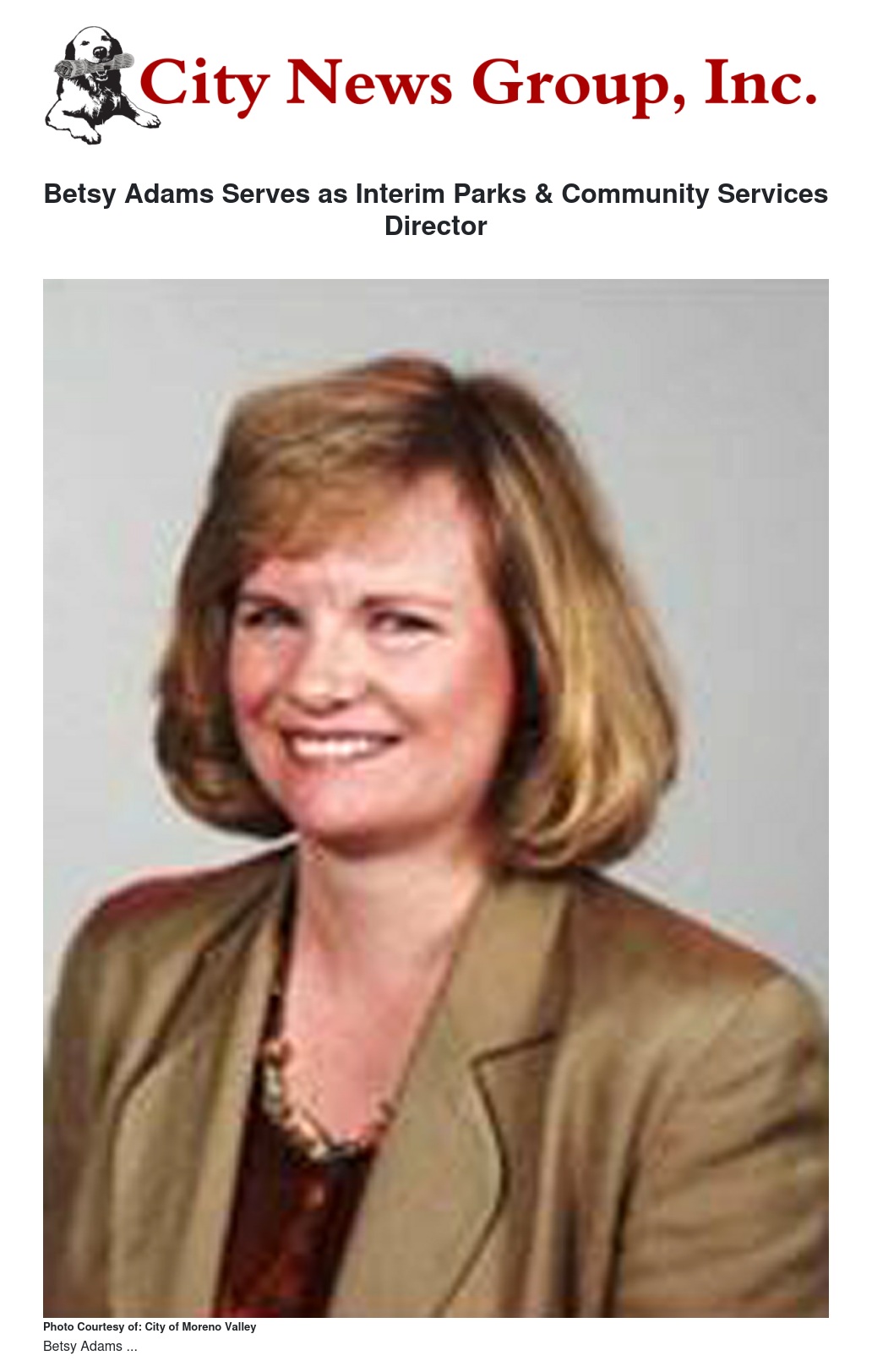 Former Assistant City Manager, Betsy Adams will serve the City of Moreno Valley once again. Ms. Adams began her new stint earlier this week serving as the Interim Director for the Parks & Community Services Department while the recruitment for the permanent Director is underway.