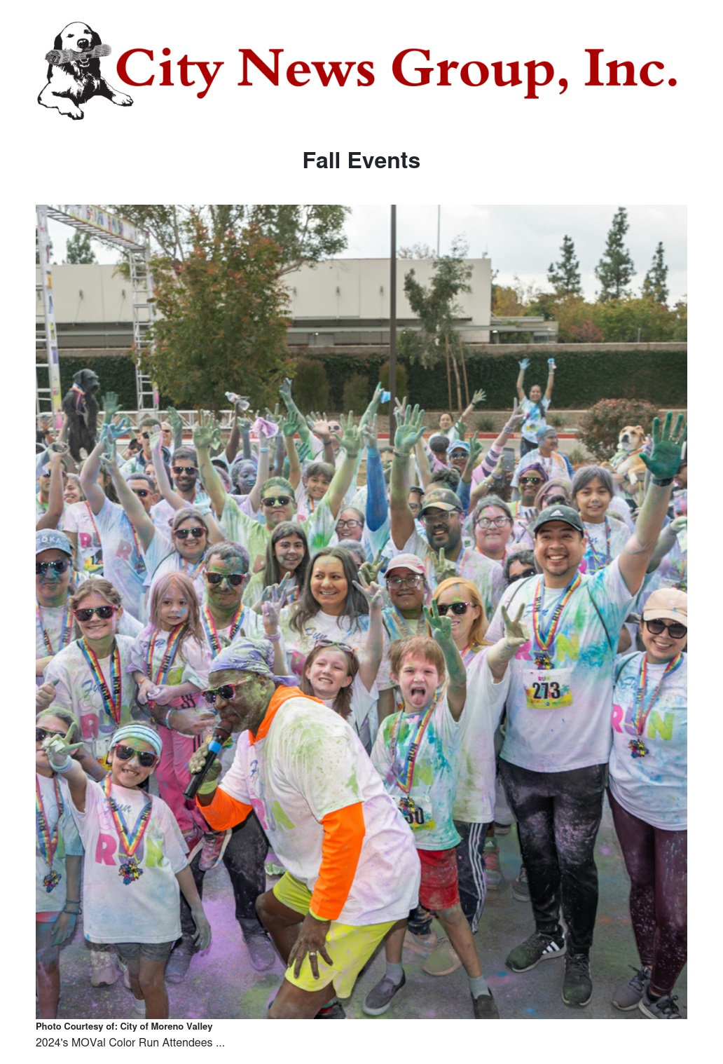 This fall, let’s celebrate everything that makes Moreno Valley special: our trails, our traditions, our heroes, and our joy. I hope to see you at one (or all!) of these events.