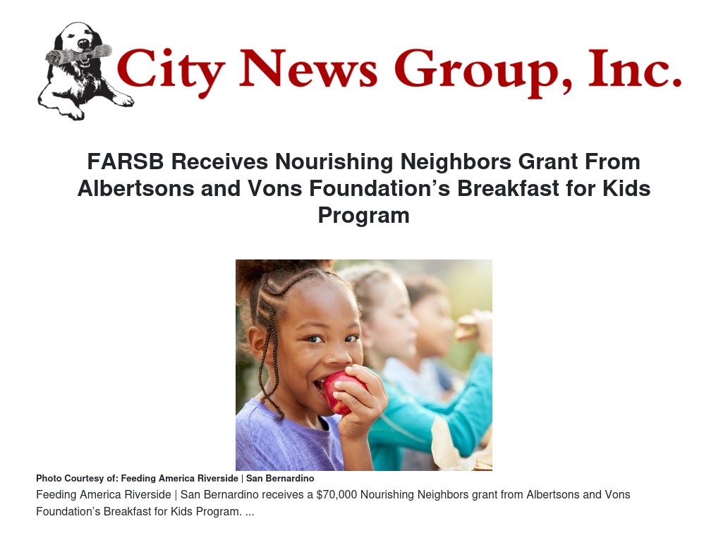 FARSB Receives Nourishing Neighbors Grant From Albertsons and Vons Foundation’s Breakfast for Kids Program by Nancy Preciado - City News Group, Inc.