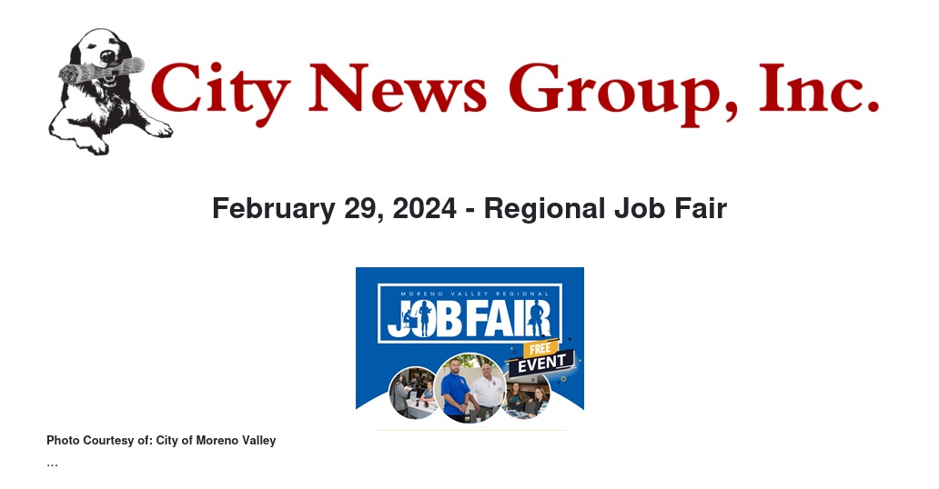 If you are in the market for a new career, please join us at our upcoming Regional Job Fair on February 29 from 9 a.m. to 1 p.m. at the Conference & Recreation Center, located at 14075 Frederick Street.