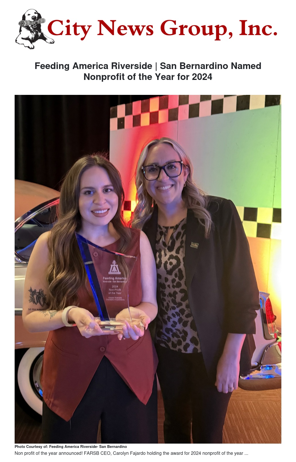 Feeding America Riverside | San Bernardino Named Nonprofit of the Year for 2024 by Rachel Bonilla - City News Group, Inc.
