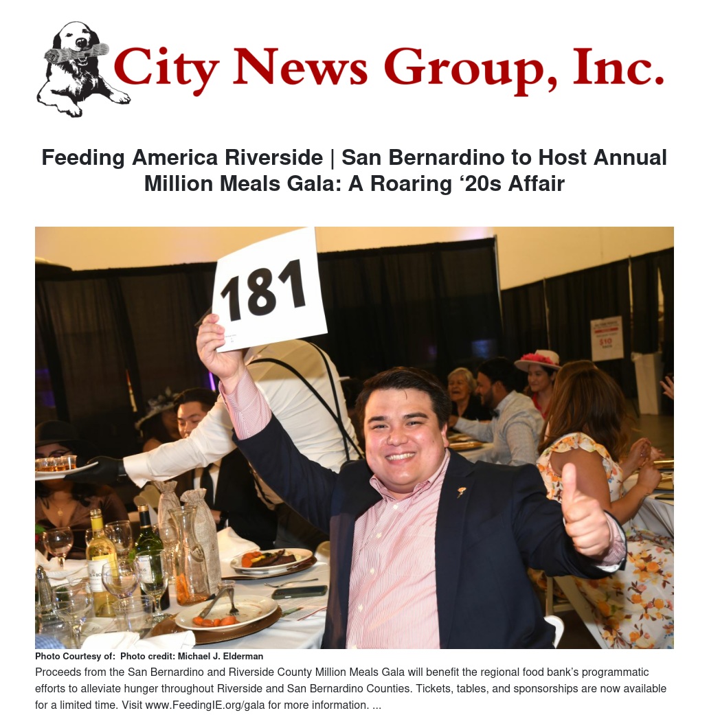 Step back in time and immerse yourself in the glitz and glamour of the Roaring ‘20s at Feeding America Riverside | San Bernardino's (FARSB) highly anticipated annual Million Meals Gala: A Roaring ‘20s Affair on Saturday, May 11, 2024 at their distribution warehouse in Riverside.