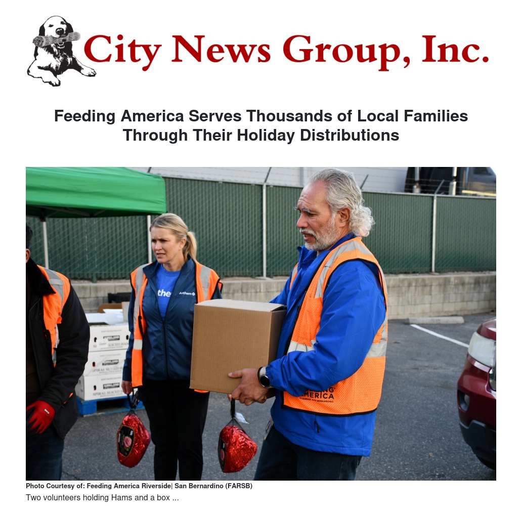 Feeding America Riverside | San Bernardino (FARSB) brought holiday cheer to thousands of families this season through its drive-through holiday food distributions. Held on November 22 and December 13, these events provided local households with a whole turkey or ham, while also connecting more families in need to FARSB’s trusted network of community partners.