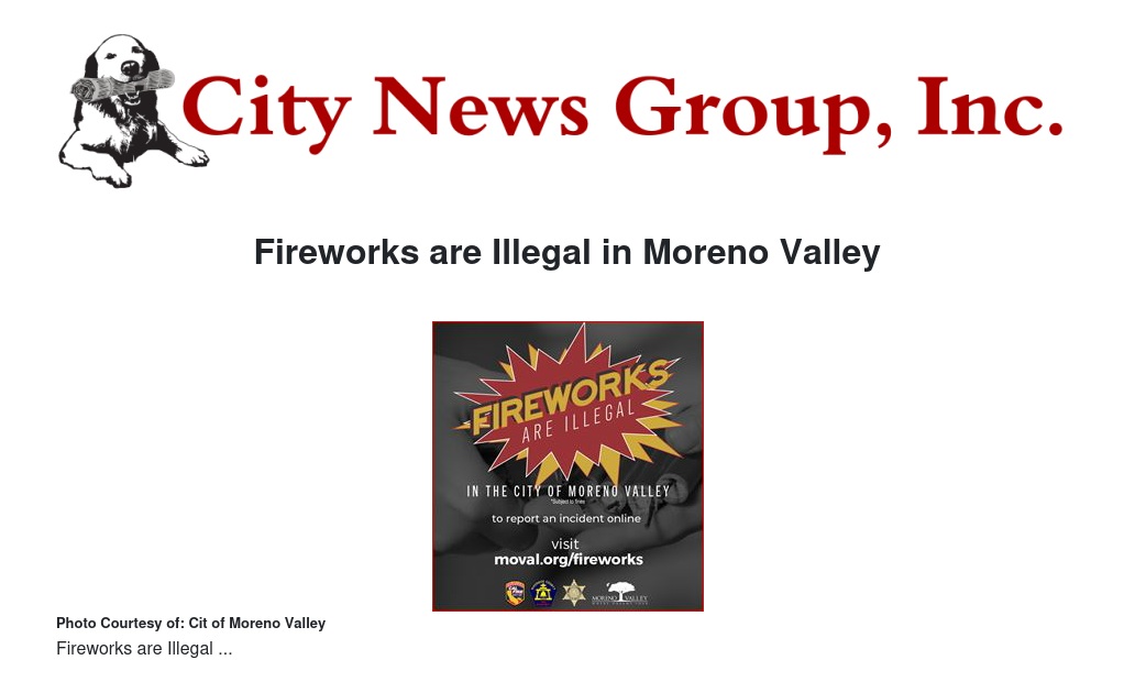 To put it in simple terms, fireworks are illegal in Moreno Valley.