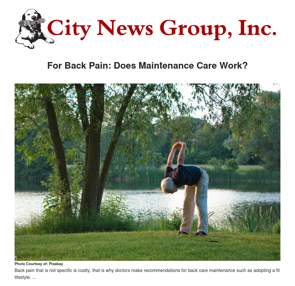For Back Pain: Does Maintenance Care Work? by James E. Cheeley - City News Group, Inc.