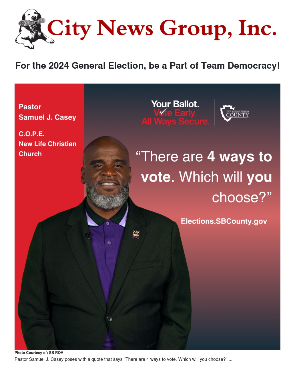For more information about the election process or opportunities to serve, visit www.Elections.SBCounty.gov. Remember, it’s “Your Ballot. Vote Early. All Ways Secure.”