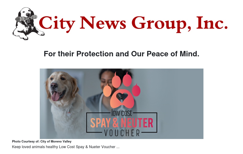During the month of May, the Moreno Valley Animal Shelter is offering Low Cost Spay-Neuter vouchers for dogs age six months and older and 30 pounds and over for qualifying low-income residents.