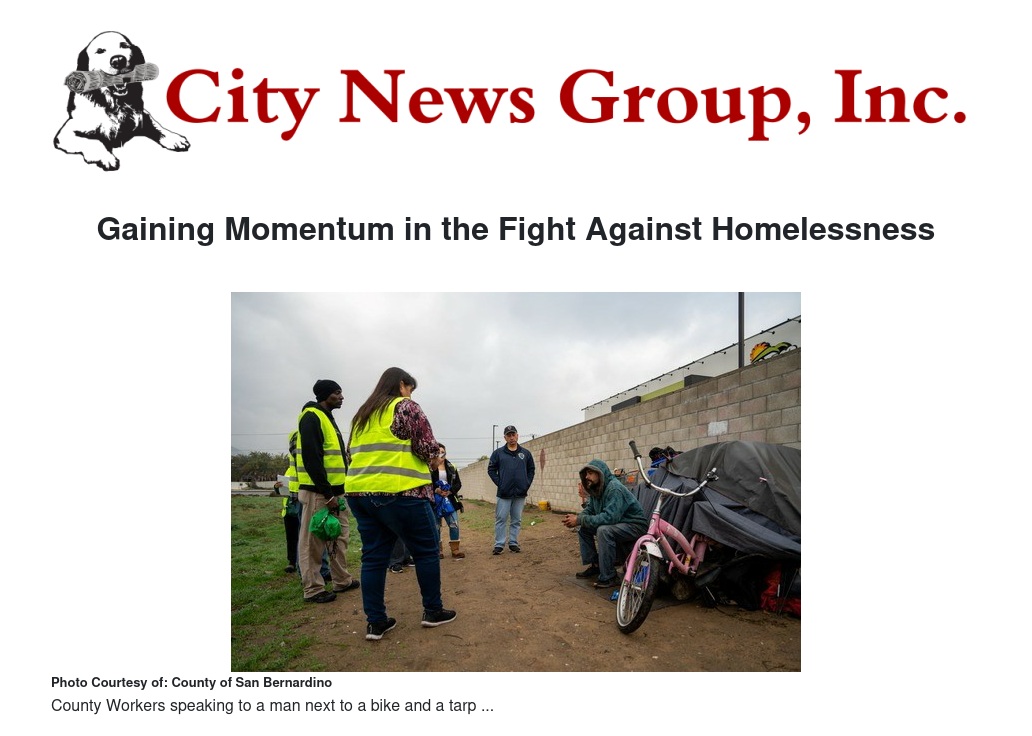 San Bernardino County’s homeless population grew by 1 percent during the past year, compared to 26 percent last year and 6.6 percent the year before, a good indication that the county and its city and community partners are building momentum in their efforts to move residents off the streets.