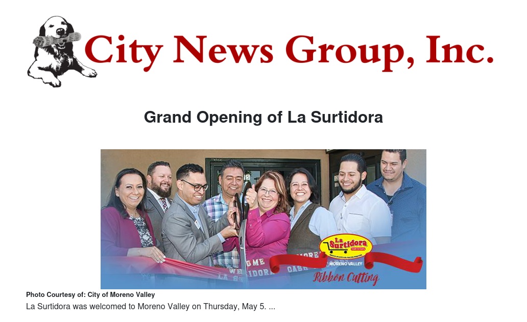 The City of Moreno Valley celebrated the grand opening of La Surtidora Cash & Carry, the newest supermarket and party supply store in Moreno Valley, during a special ribbon-cutting ceremony on Thursday, May 5.