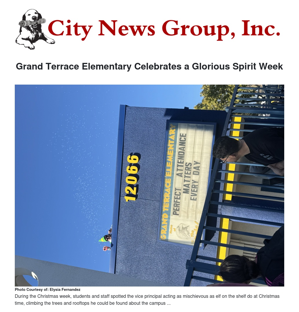 If there is one thing Grand Terrace Elementary knows how to do, it is how to ring in the holiday season with style, energy, and a massive amount of heart. As students and staff prepared to head off for winter vacation, the school concluded the semester with a "glorious and fantastic" weeklong Spirit Week that will be remembered for years to come.