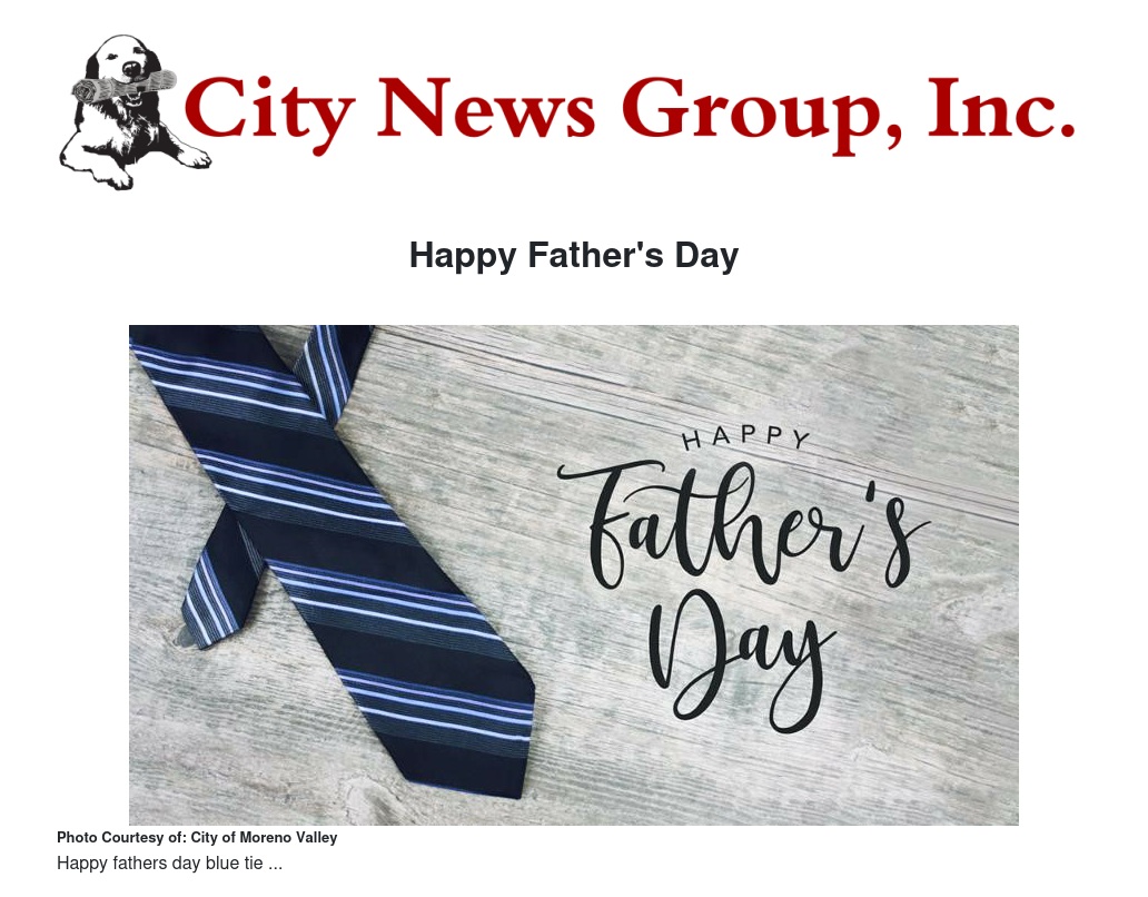 Next Sunday is Father’s Day. This national holiday is a great opportunity for each of us to take a moment to celebrate the fathers, grandfathers, and father figures in our families by getting out and enjoying the family-friendly community we share here in Moreno Valley.