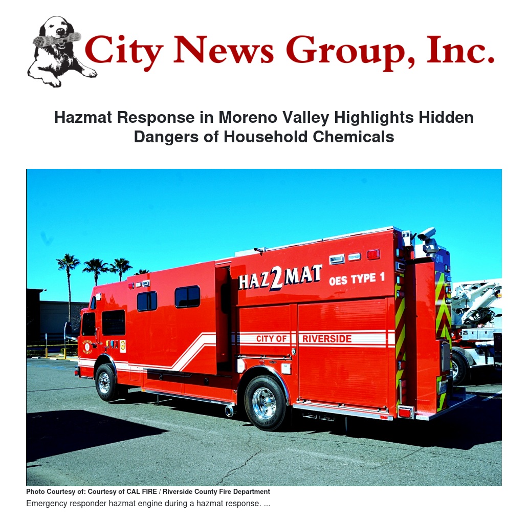 Hazmat Response in Moreno Valley Highlights Hidden Dangers of Household Chemicals by Ruby Stephenson - City News Group, Inc.