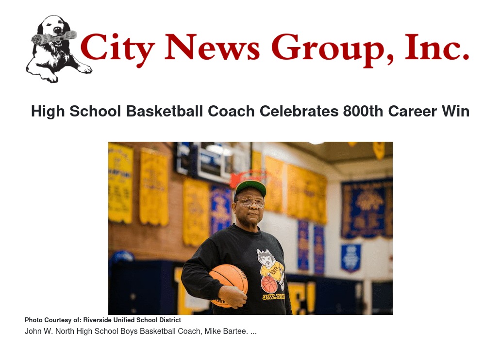 "Congratulations to Coach Bartee for reaching this milestone and to the Huskies Basketball team for the victory! Coach is a JW North graduate and played basketball for the Huskies which makes his 800th win even more special" said Jodi Gonzales, John W. North High School Principal. Two additional victories by the Huskies now sets Coach Bartee at 802 wins this season.