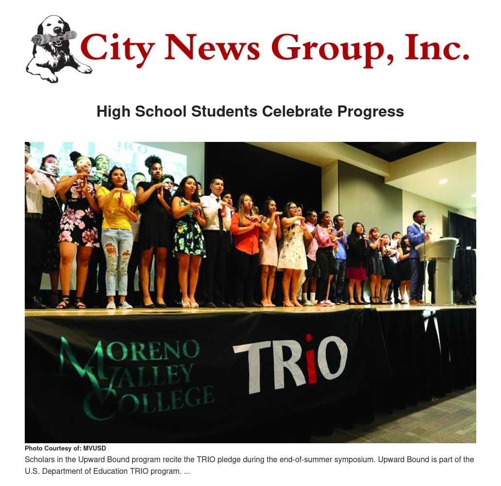 The Moreno Valley College (MVC) Upward Bound Math and Science Program recognized about 80 students from Valley View and Vista del Lago High Schools following their completion of the program’s six-week summer experience. Upward Bound is funded by the U.S. Department of Education and sponsored by MVC in partnership with Moreno Valley Unified School District.