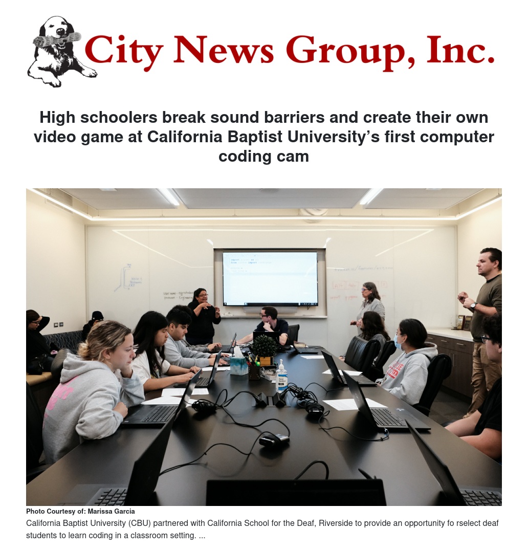 In the first-of-its-kind high school computer coding camp for Deaf students, California Baptist University (CBU) partnered with California School for the Deaf, Riverside, (CSDR) to give 10 Deaf high schoolers the coding knowledge to develop their own video game, and more importantly, demonstrate that pursuing a degree in engineering is a career choice that can be rewarding on multiple levels.