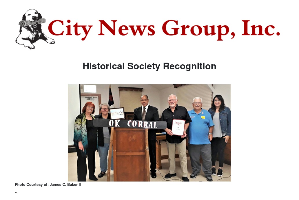 On Sunday, Jan. 20th, at the Moreno Valley Historical Society's Potluck and speaker meeting, Retired Commissioner James C. Baker II, made a long awaited Formal Presentation of the California Senate's Certificate of Recognition to the Society, for their sponsorship and work on the Sweepstakes winning Wyatt Earp Float which appeared at the 2018 MoVal Independence Day Parade. From left to right; Artist,Glenna Silman, Historical Society President Alice Bradley, Commissioner James C. Baker II,(Float Designer), Jim Maxwell,(who portrayed Wyatt Earp}, Glenn Maness,and Crystal Reza. Thank you Senator Richard Roth and staff for this honored recognition.