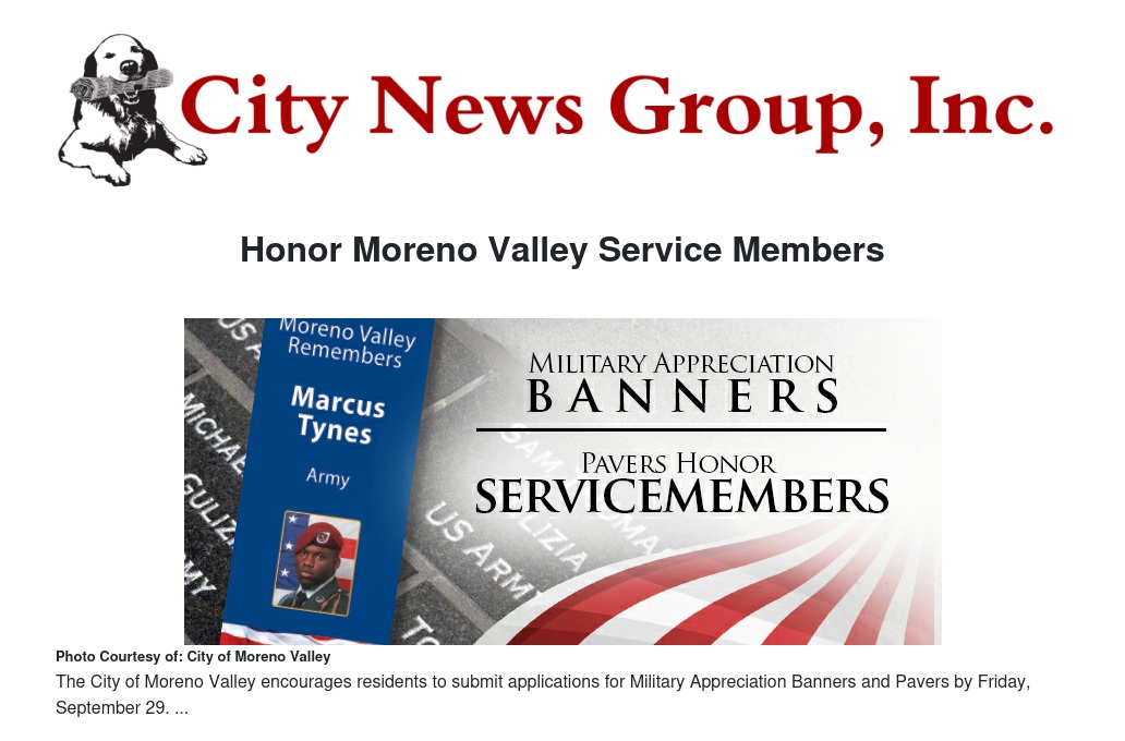 Honor Moreno Valley Service Members by City of Moreno Valley - City News Group, Inc.