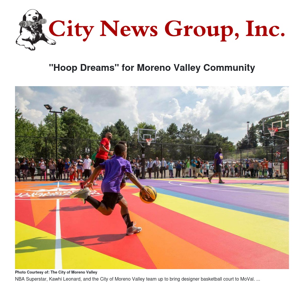 NBA Superstar and Moreno Valley native, Kawhi Leonard, is once again giving back to his hometown of Moreno Valley. Mayor Gutierrez and the Leonard Family are working alongside NRG/New Balance and NBA2K Foundation to sponsor a full-sized basketball court at Weston Park. But, this won’t be an ordinary court. The basketball court surface will be a one-of-a-kind community-centric art piece designed by local artists and hand-painted by residents of Moreno Valley. This unique court will not only provide another venue for basketball but will also highlight the importance of art and artistic expression in the City of Moreno Valley.
