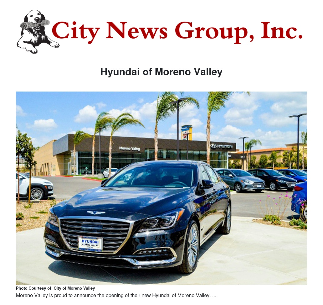 "I am appreciative of the level of support from the City to get Hyundai of Moreno Valley open,” said Brown. “I am extremely excited to join the Moreno Valley business community.”