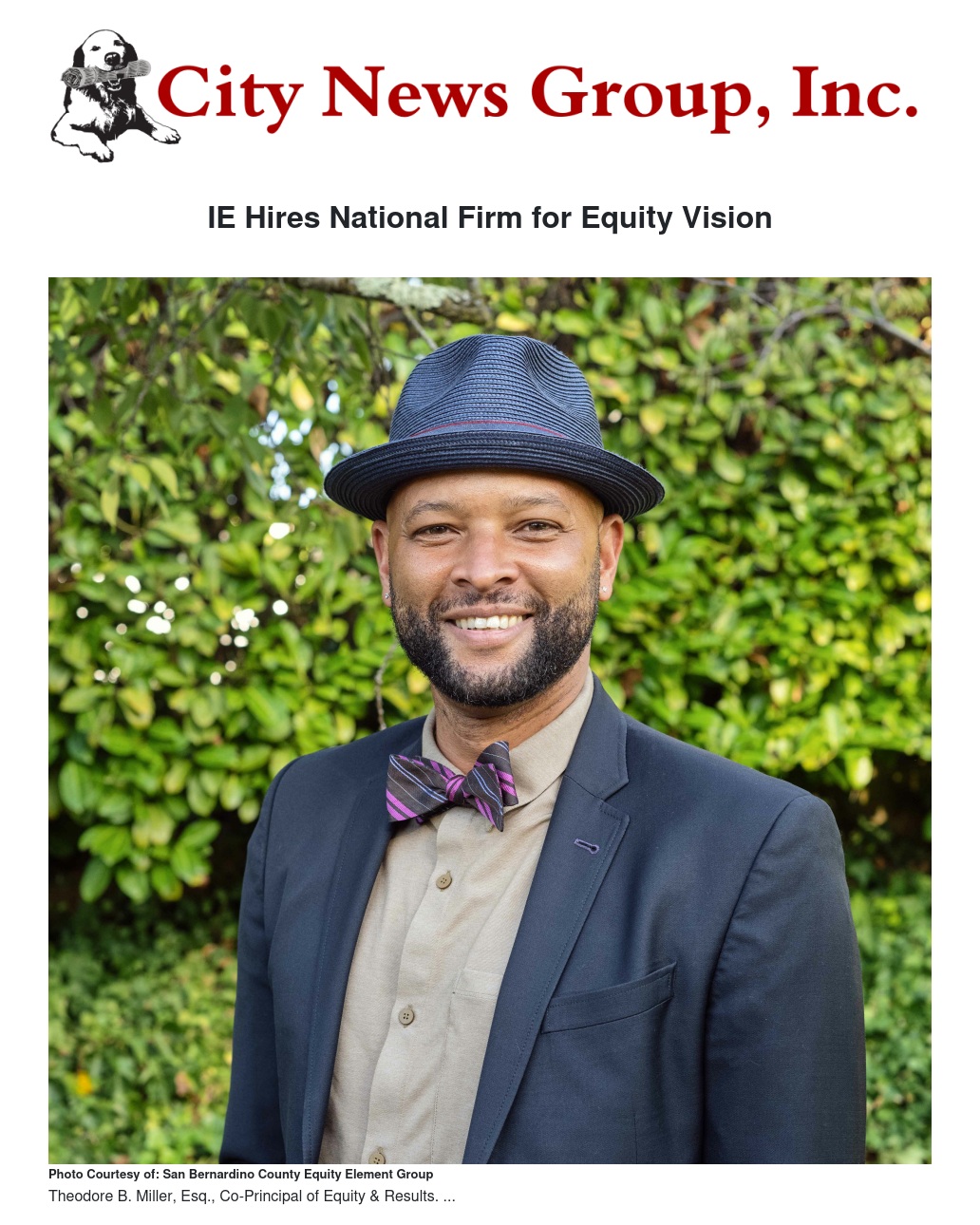 San Bernardino County, in partnership with the San Bernardino County Equity Element Group (SBC Equity Element Group), has retained the firm of Equity & Results, a multiracial learning organization expert in supporting organizations in advancing racial equity and liberation through institutional change. A co-principal and co-founder, Theodore B. Miller, Esq., leads the engagement.