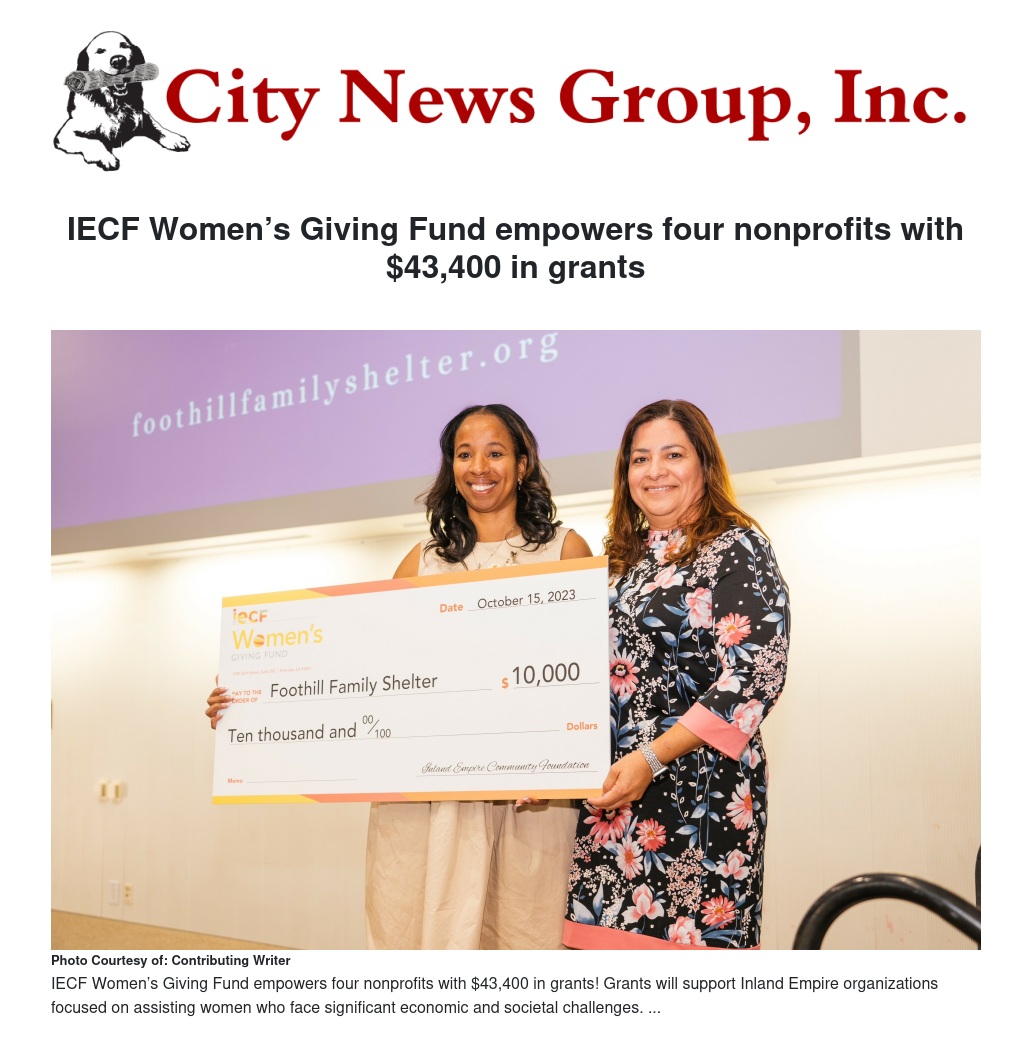 The 2023 grants will not only enhance the resources available to these nonprofits but also empower them to expand their reach and make a lasting difference in the lives of women and their families in the areas of health, education and economic empowerment. The IECF Women's Giving Fund remains dedicated to using collaborative philanthropy to create opportunities for women to thrive in the Inland Empire.