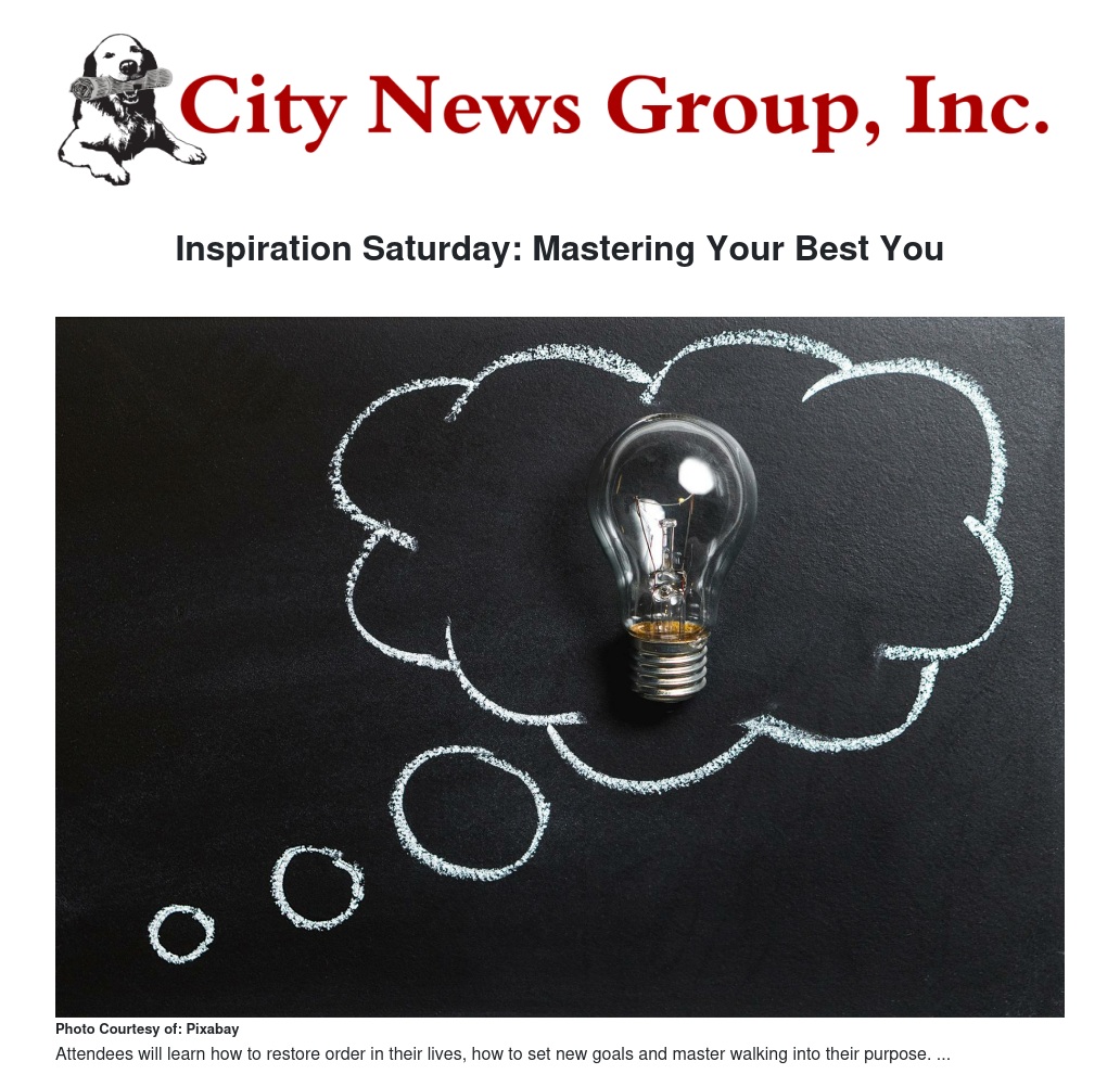 “Inspiration Saturday: Mastering Your Best YOU” will be held from 9-11 a.m. at the Inland Empire Women’s Business Center, 1003 E. Cooley Dr, Suite 109, in Colton. The cost is $10 per participant. Vendor space is also available at the event.