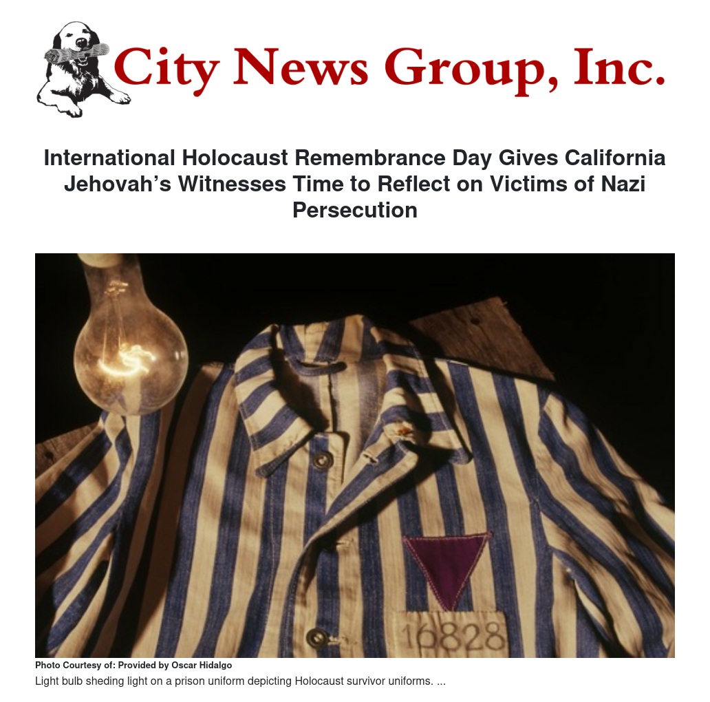International Holocaust Remembrance Day Gives California Jehovah’s Witnesses Time to Reflect on Victims of Nazi Persecution by Remembering Nazi Victims and Fragile Freedoms - City News Group, Inc.