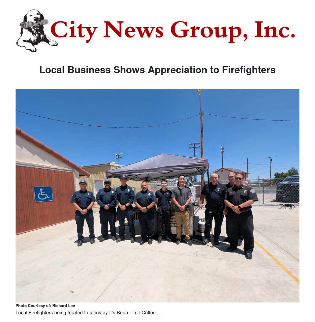In celebration of the July 4th holiday, It’s Boba Time Colton honored the city’s first responders with a special catered meal at the Colton Fire Department. The event, held in the days leading up to Independence Day, was a heartfelt show of appreciation for the firefighters’ dedication and service to the community.