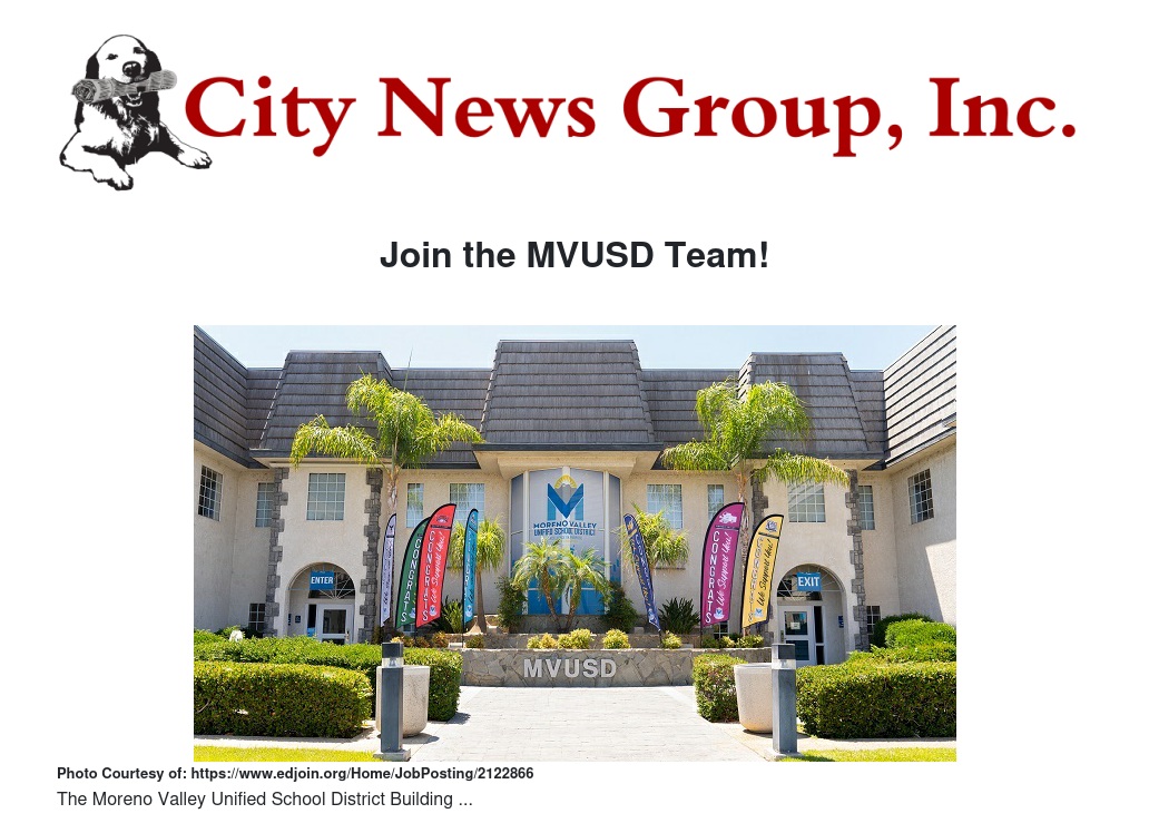 The Moreno Valley Unified School District is currently hiring for multiple opportunities. Their goal is "Excellence on Purpose." In order to achieve this goal, the Human Resources Division works toward building a foundation of employee excellence through a diverse and dedicated workforce.