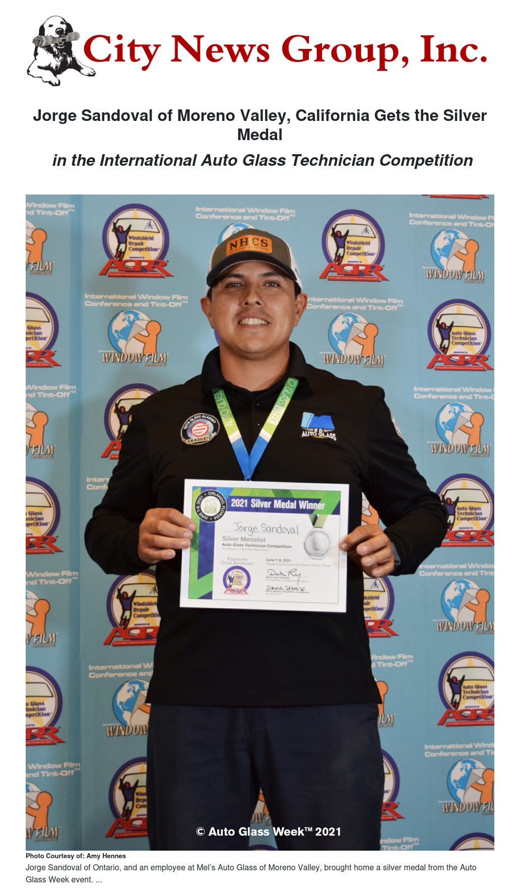 Like most competitors, Sandoval is an Auto Glass Safety Council™ certified technician and a National Windshield Repair Division certified technician. Sandoval lives in Ontario, Calif.